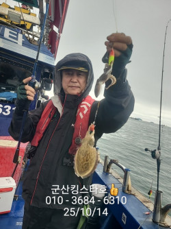 군산킹스타호금일(10/10)찾아주신 조사님들 모시고먼바다로 갑오징어 출조~오늘도 개인조과차이가 있는 날이였읍니다.찾아주신 조사님들 수고많으셨읍니다.조사님들출조전날 드리는 문자를 꼭 확인하시고, 부탁드리는 준비물은 꼭 준비해주시기 바랍니다.낚시대임대는선상에서 하지 않읍니다.승선명부 작성시 출조점(대일피싱)에서 임대하시기 바라며, 필요한 채비등은 출조점에서 구매가능합니다.※ 군산킹스타호 출조일정10/14(화) 쭈.갑출조(예약접수중)10/15(수) 쭈.갑출조(예약접수중)10/16~31 갑오징어 출조 (예약중)11/1(토) 주간문어 출조11/2(일) 주간문어 출조 ==>> 예약가능 11/3~11/13 갑오징어 출조 11/14~~ 주간문어 출조 그외군산킹스타호 홈페이지 참조 ==출조계획있으신분들 참고하시어 군산킹스타호 홈페이지로 예약하시기 바랍니다. 출조문의 (선장님) : 010 - 3684 - 6310전화예약 : 010 - 4996 - 6311 군산킹스타호 예약 (바로가기 ) http://kingstarho.sunsang24.com/ship/ 군산킹스타호 밴드 (초대) https://band.us/band/77427675유튜브: https://youtube.com/@gunsan-kingstarho